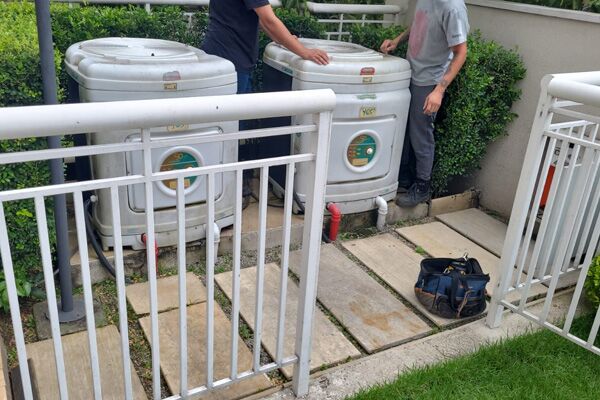 Substituição de compressor em sistema de aquecimento de piscina